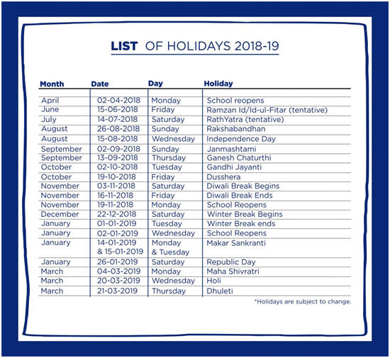 List of Holidays